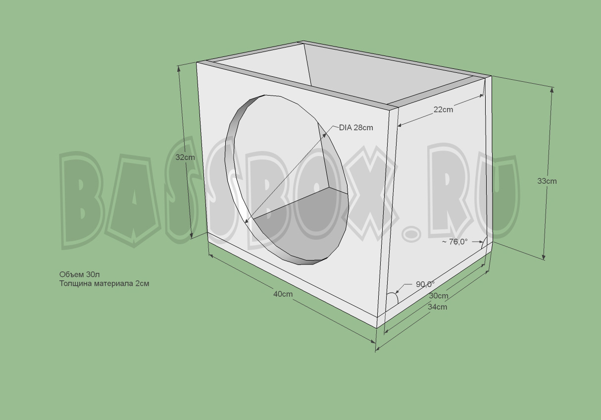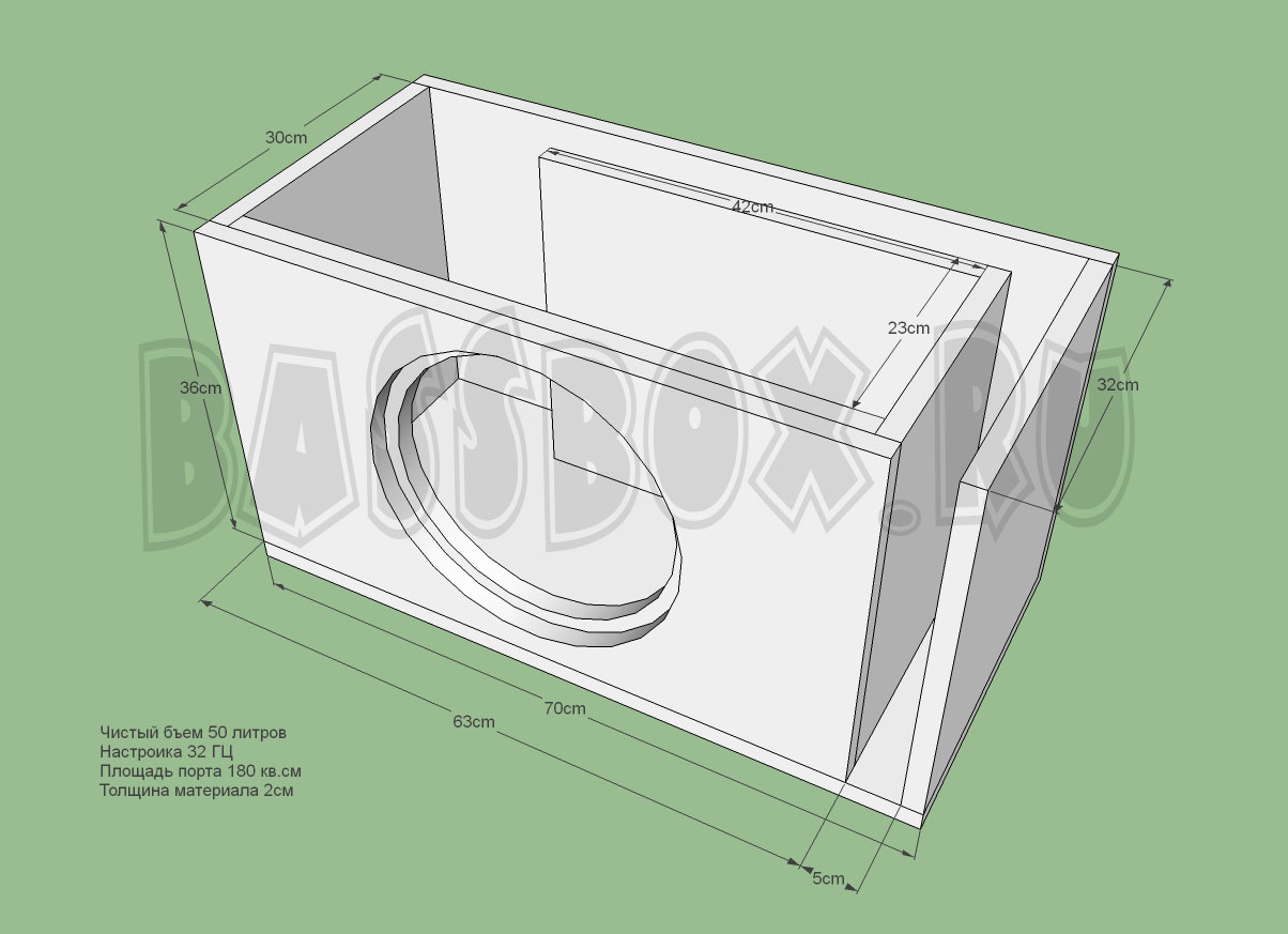 Чертеж ФИ короба 50л 32Гц для Machete M12D2 Sport.
