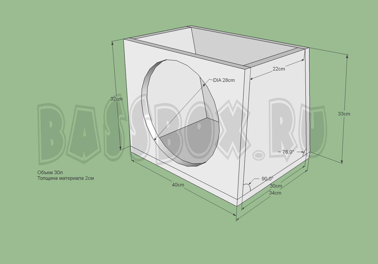 Чертеж ФИ короба 50л 32Гц для Magnum M12D4.