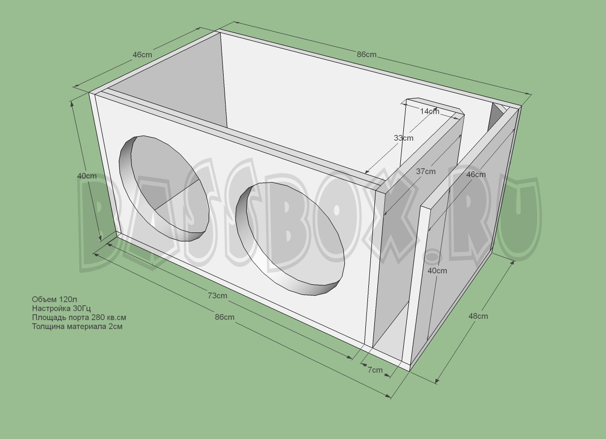 Чертеж ФИ короба 120л 30Гц для двух Machete MS-12D4.