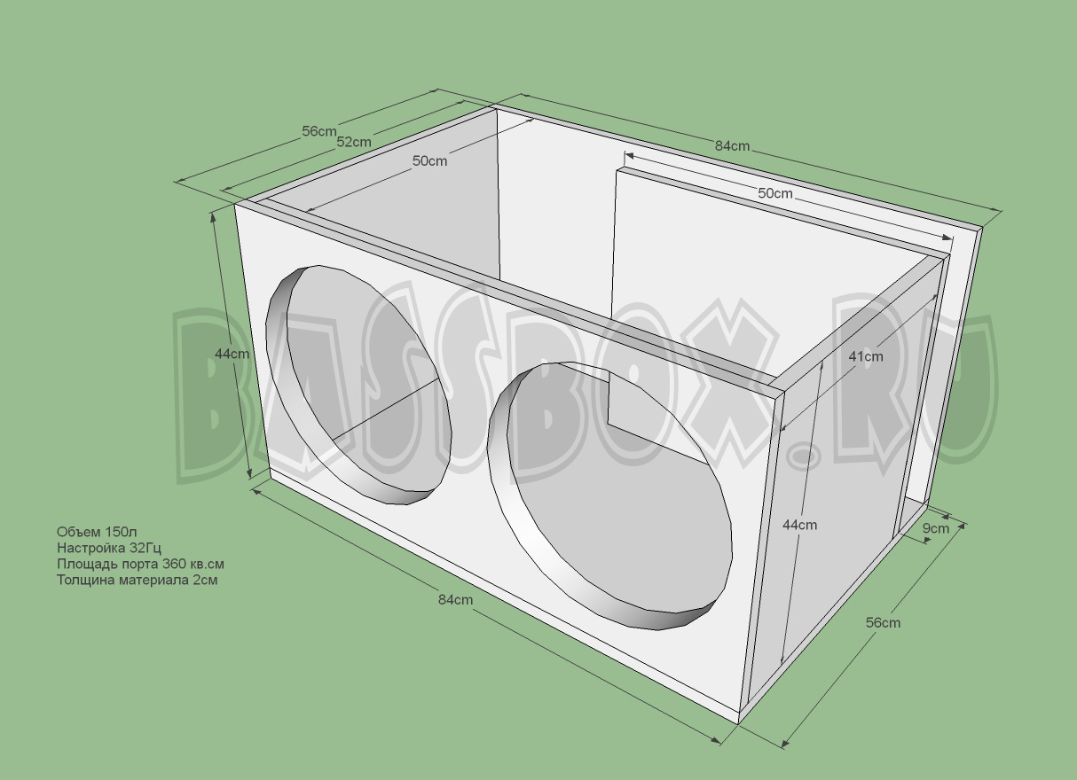 Чертеж ФИ короба 150л 32Гц для двух Machete M15D2 Sport.