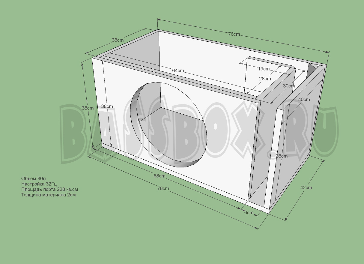 Чертеж ФИ короба 80л 32Гц для Machete M15D2 Sport.