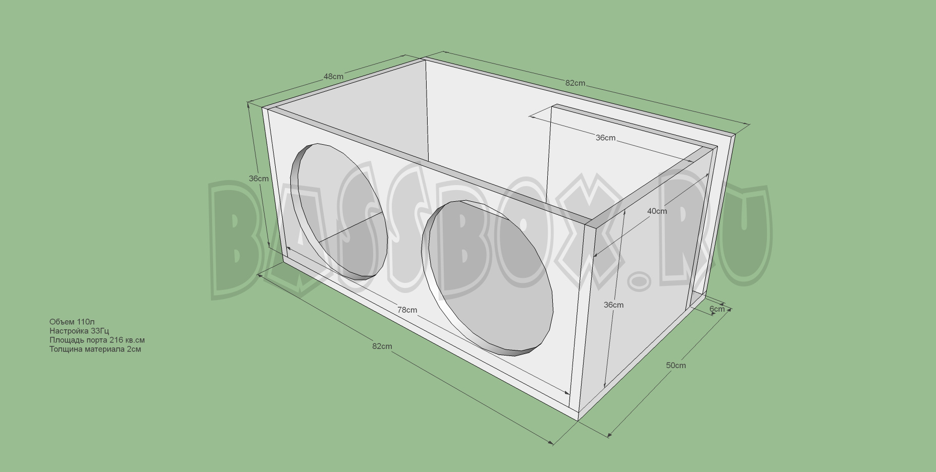 Чертеж ФИ короба 110л 33Гц для двух Avatar SST-12.