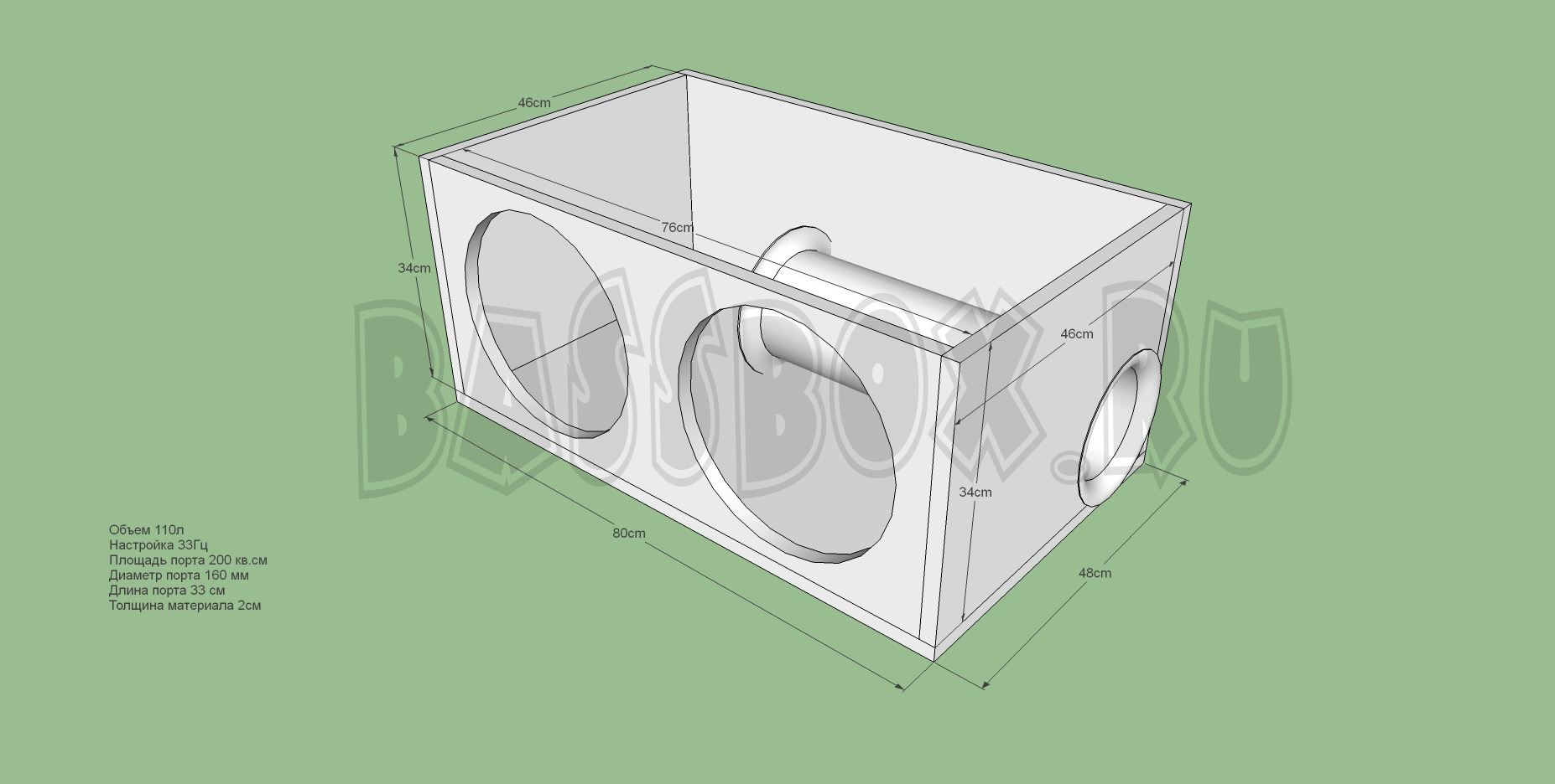 Чертеж ФИ короба 110л 33Гц на 160 трубе для двух Avatar SST-12.
