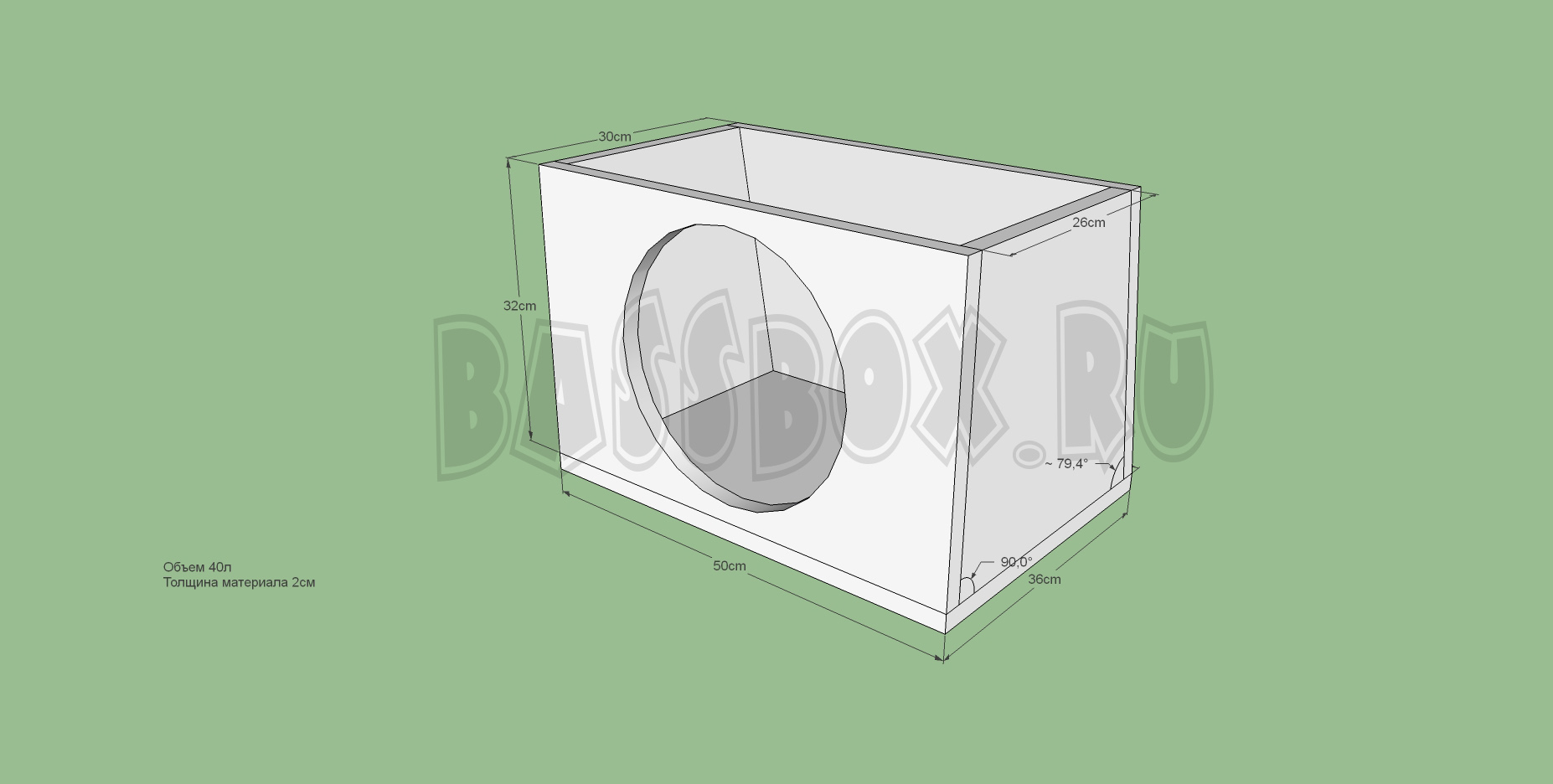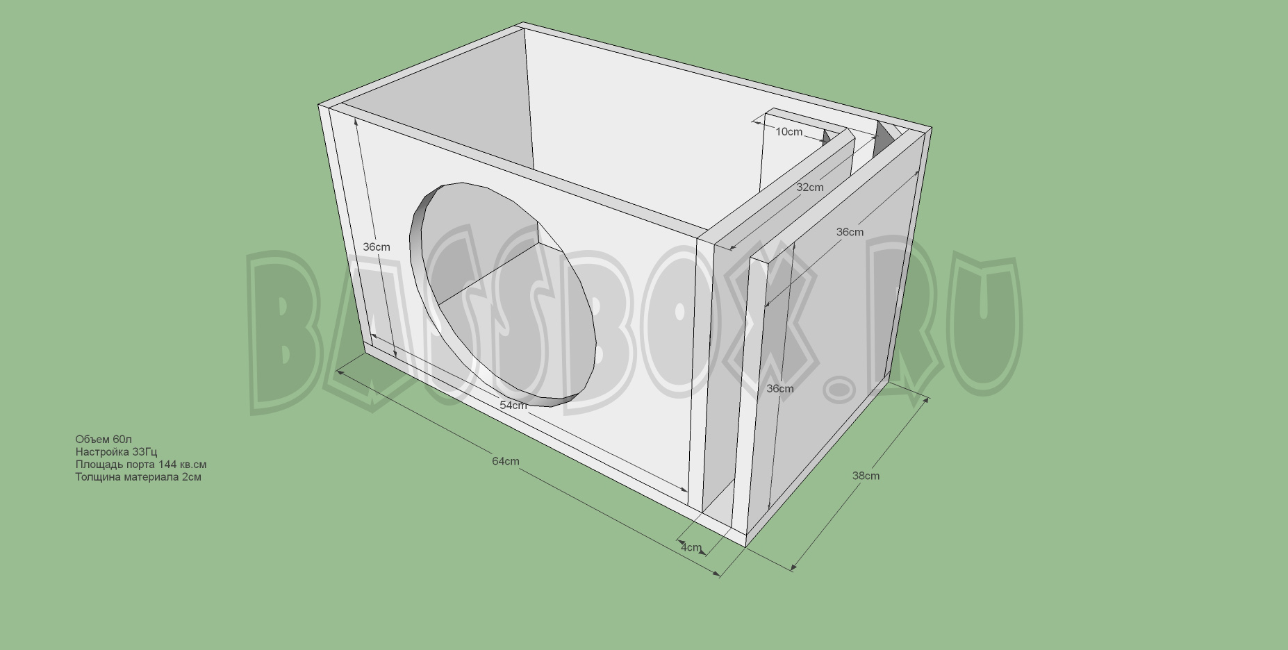 Чертеж ФИ короба 60л 33Гц c портом в бок ( с портом в крыло) для Avatar SST-12.