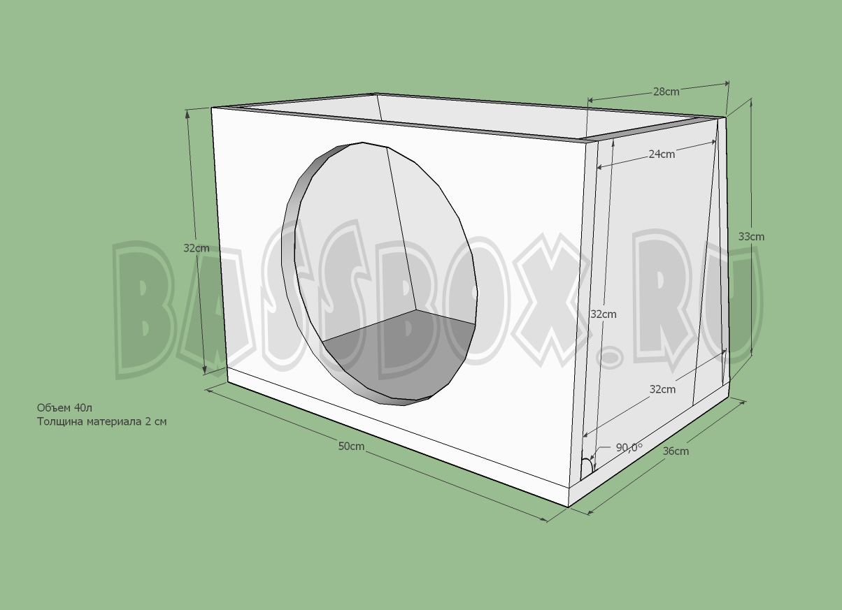 Закрытый ящик для Avatar SST-2512D4 должен обладать объемом 35-40 литров. Для данного сабвуфера это оптимальный объем. В этом объеме сабвуфер не будет чувствовать себя сдержанно и раскроет свои потенциал.