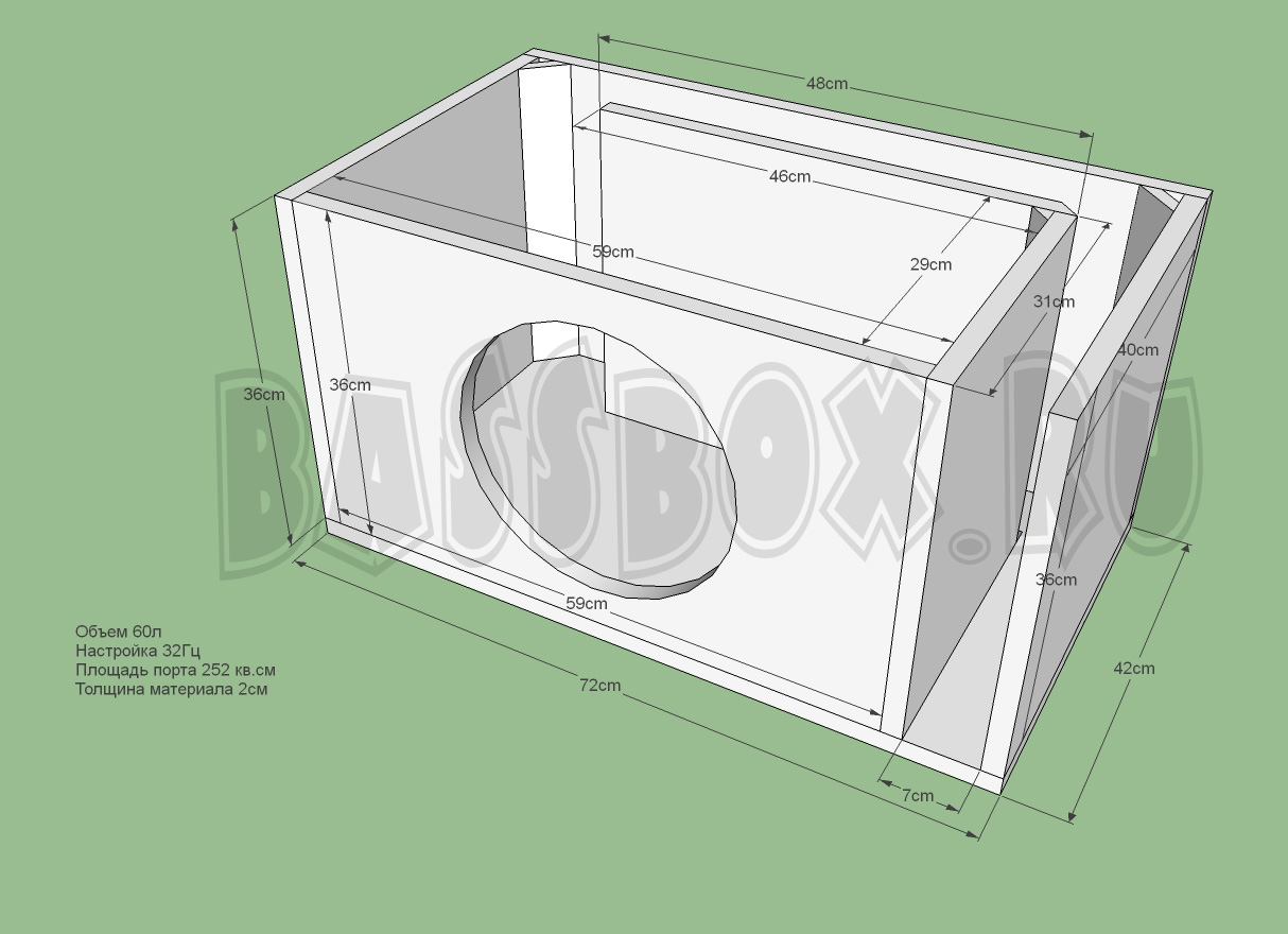 Чертеж ФИ короба 60л 32Гц для Avatar SST-2512D4.