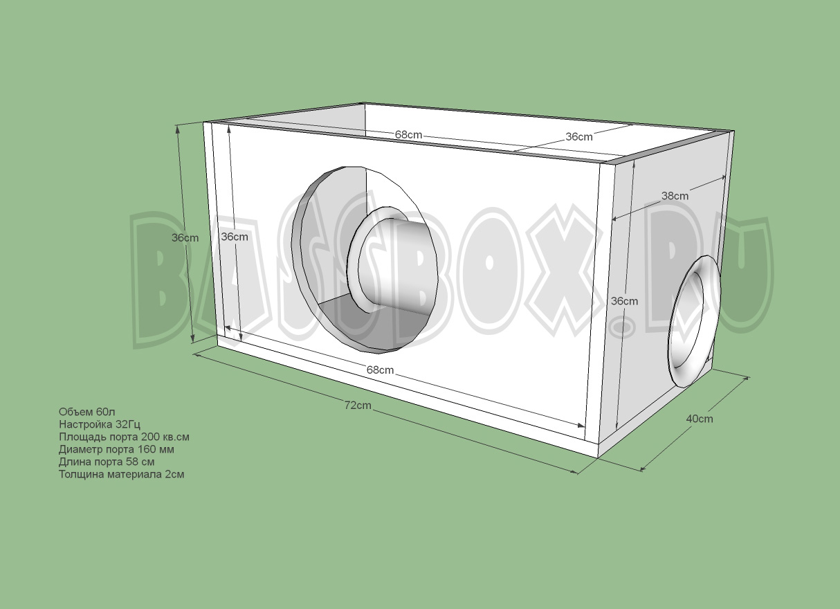Чертеж ФИ короба 60л 32Гц на 160 трубе для Avatar SST-2512D4.
