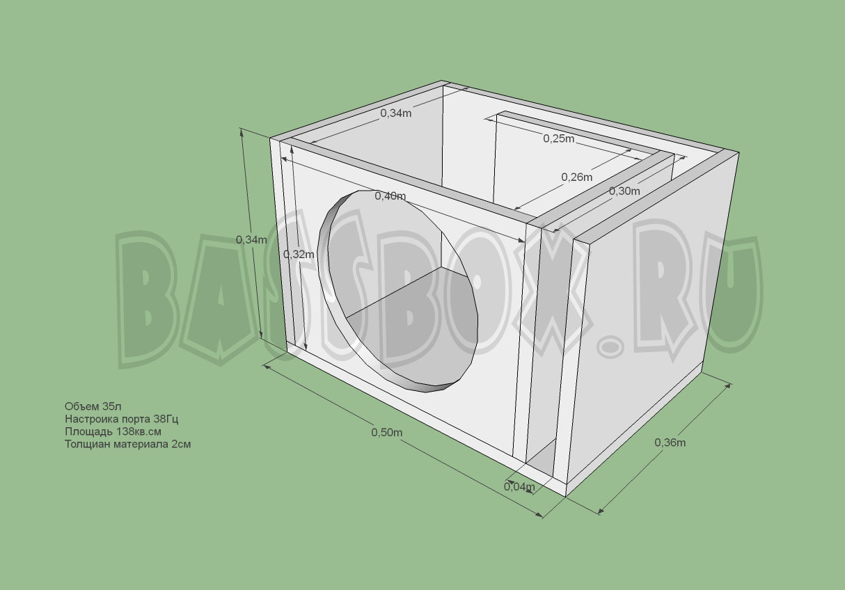 Чертеж ФИ короба 35л 38Гц для Pioneer TS-W3002D4