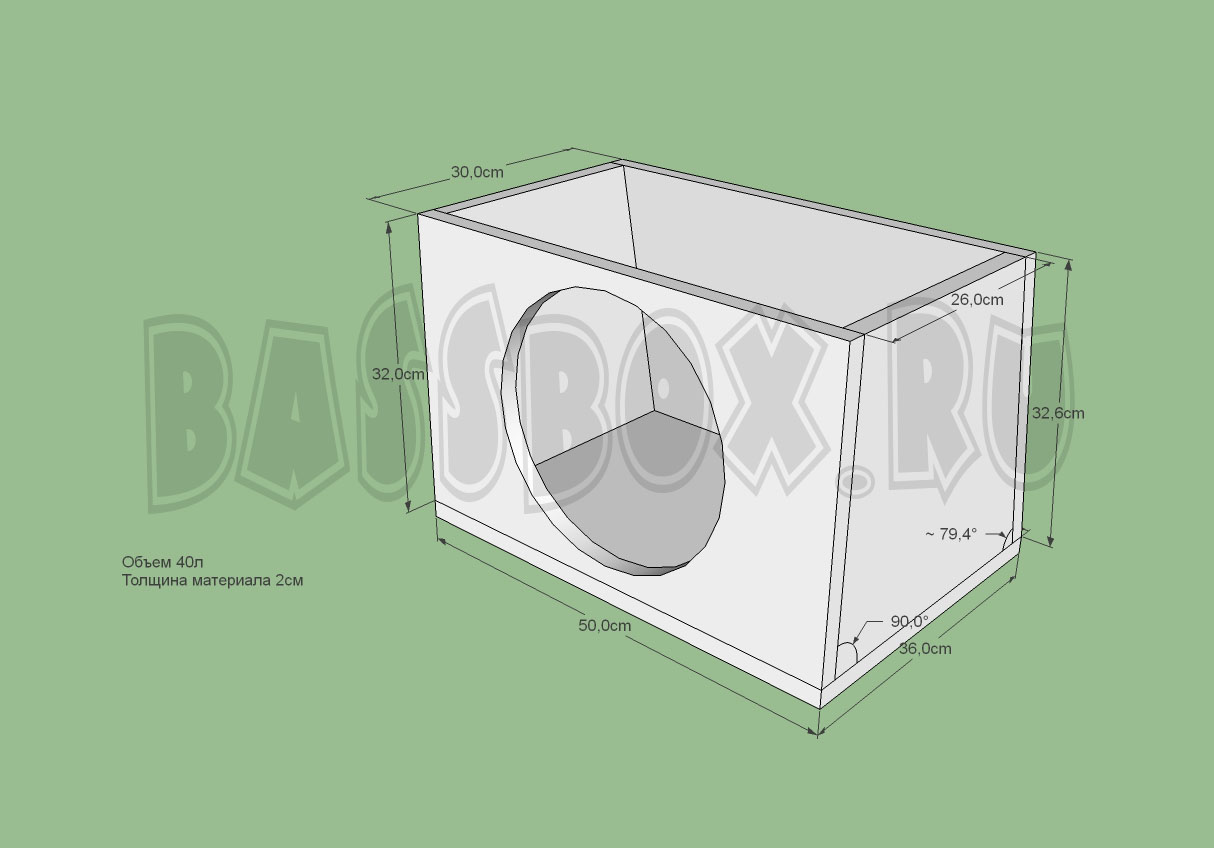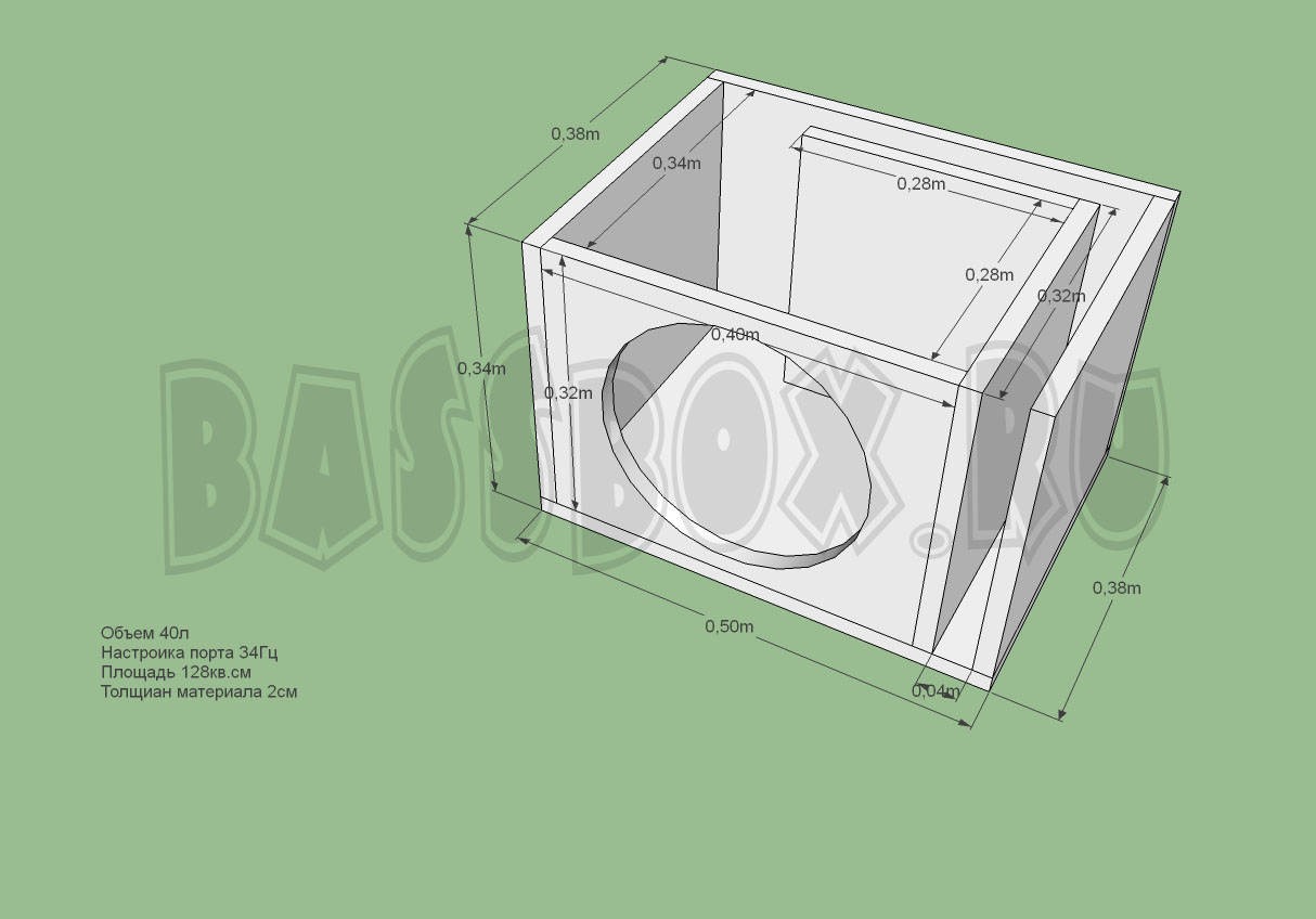 Чертеж ФИ короба 40л 34Гц для Pioneer TS-W3003D4