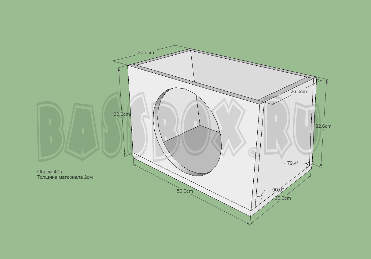 Закрытый ящик для Pioneer TS-W306R должен обладать объемом 40 литров. Это несколько больше рекомендованного производителем объема, но это очень хорошо скажется на качестве звучания. Для данной модели сабвуфера это оптимальный объем, сабвуфер в нем не будет чувствовать себя сдержанно и сможет отыгрывать самые низкие частоты.