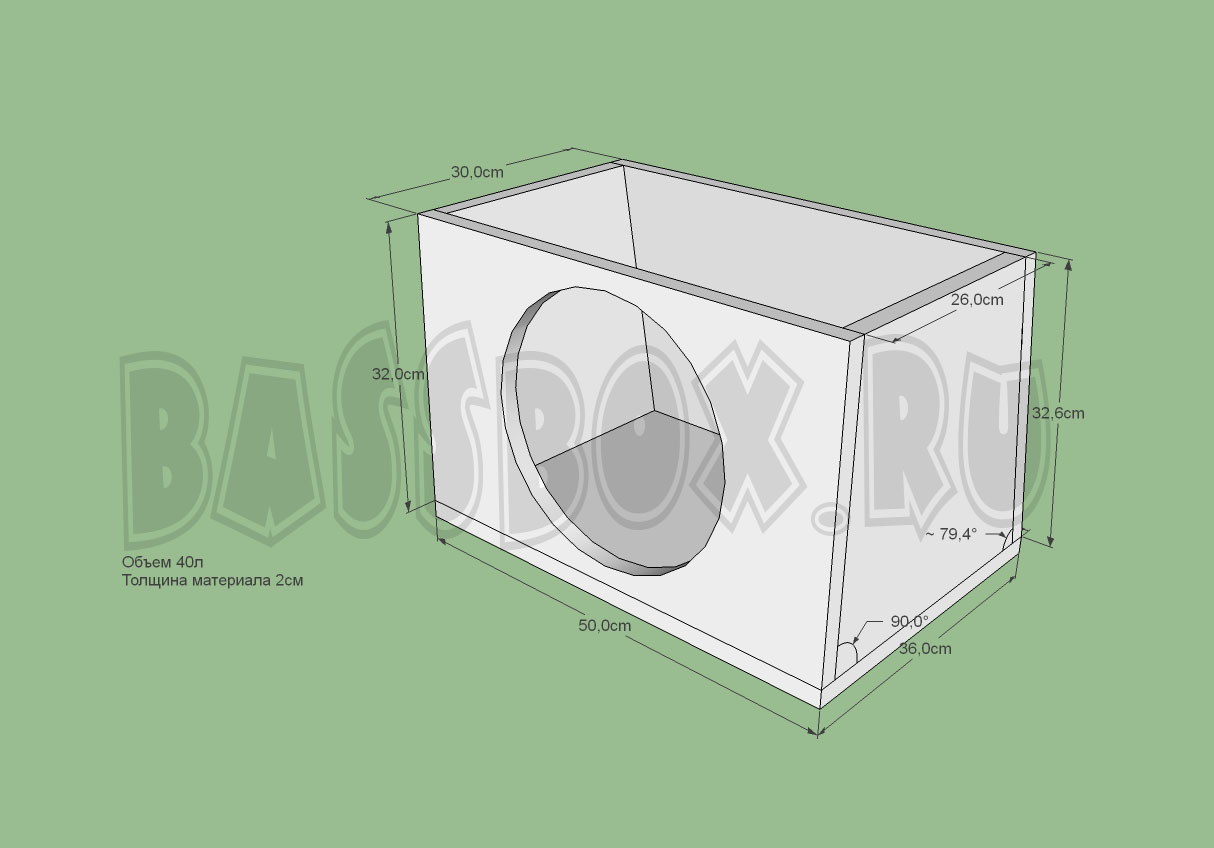 Закрытый ящик для Pioneer TS-W311D4 должен обладать объемом 40 литров. Это несколько больше рекомендованного производителем объема, но это очень хорошо скажется на качестве звучания. Для данной модели сабвуфера это оптимальный объем, сабвуфер в нем не будет чувствовать себя сдержанно и сможет отыгрывать самые низкие частоты.