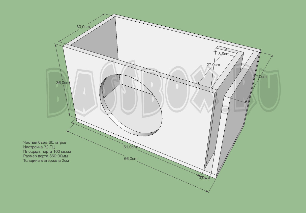 Чертеж ФИ короба 60л 32Гц для Pioneer TS-W311D4