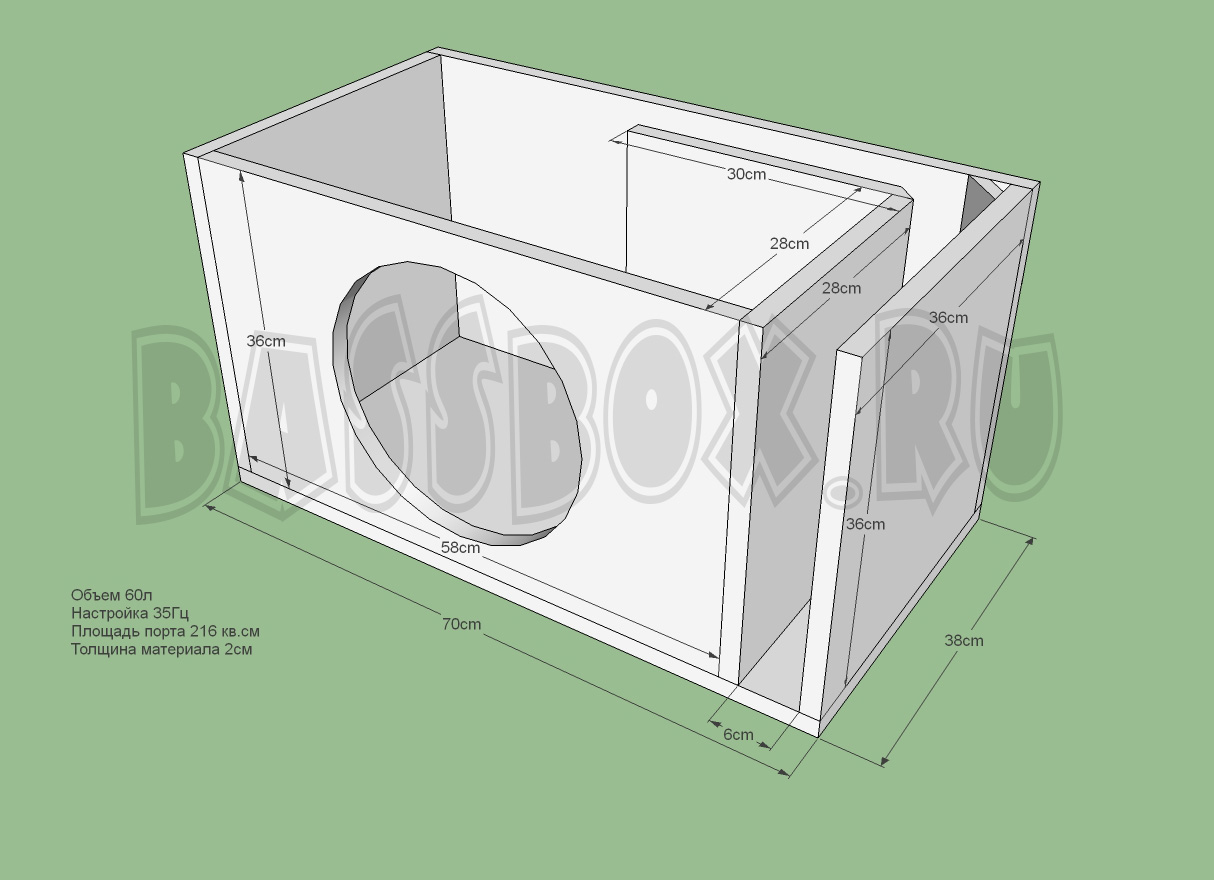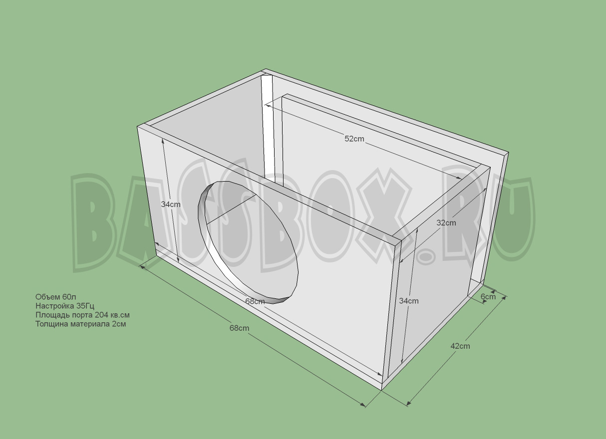 Чертеж ФИ короба 60л 35Гц c портом в бок ( с портом в крыло) для Pride Junior 12.