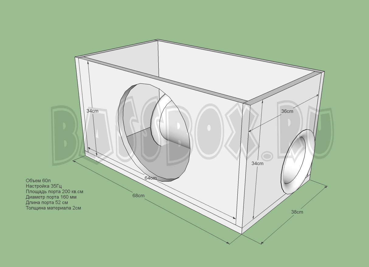 Чертеж ФИ короба 60л 35Гц на 160 трубе для Pride Junior 12
