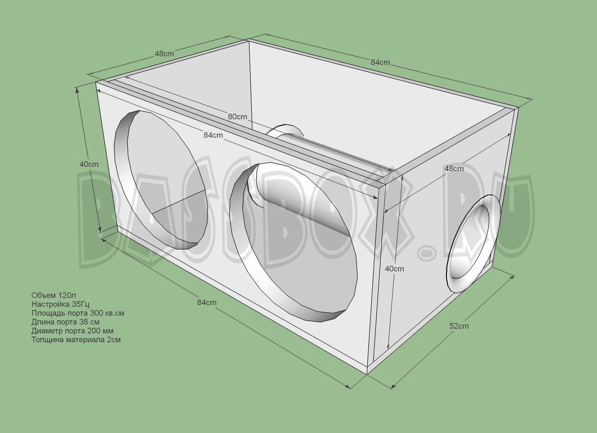Чертеж ФИ короба 70л 35Гц на 200 трубе для Pride Hp 15