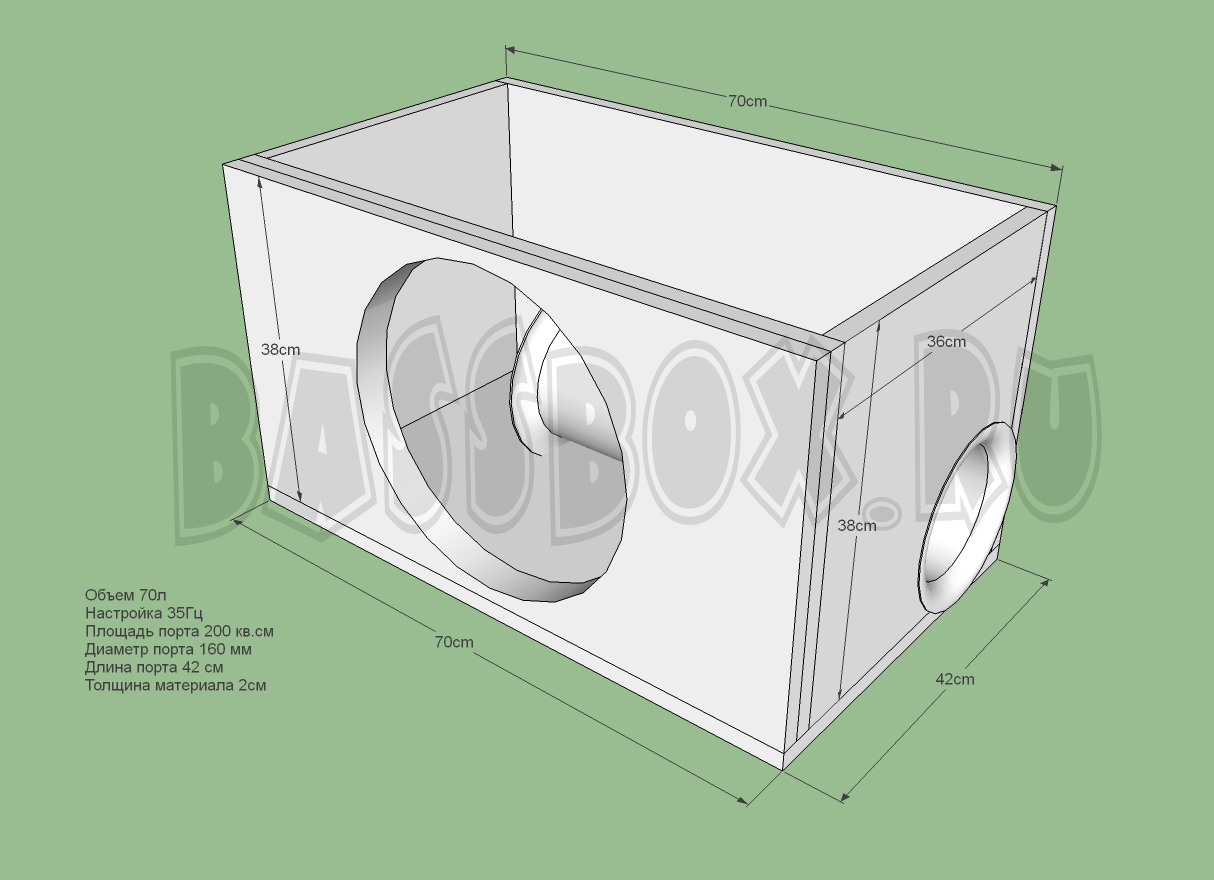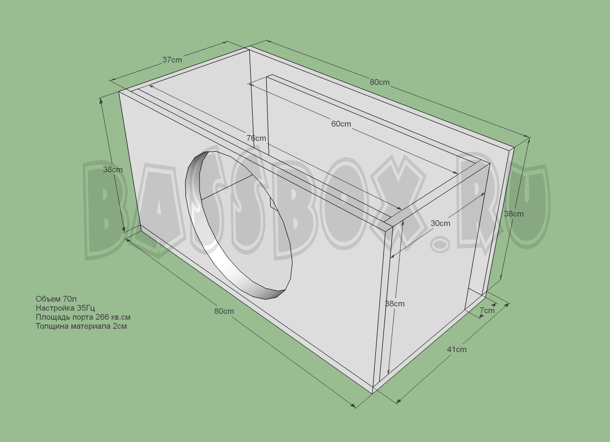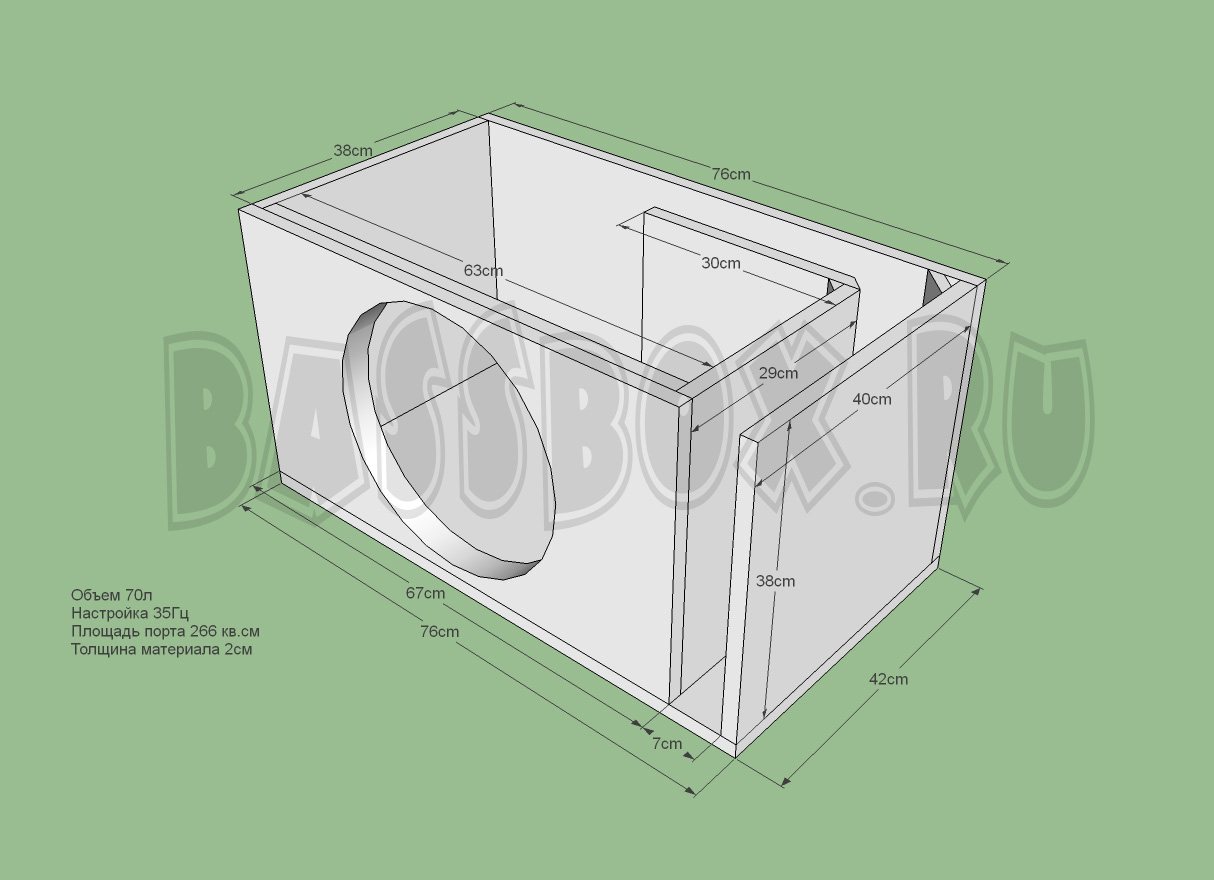 Чертеж ФИ короба 70л 35Гц c портом в бок ( с портом в крыло) для Pride HP 15.