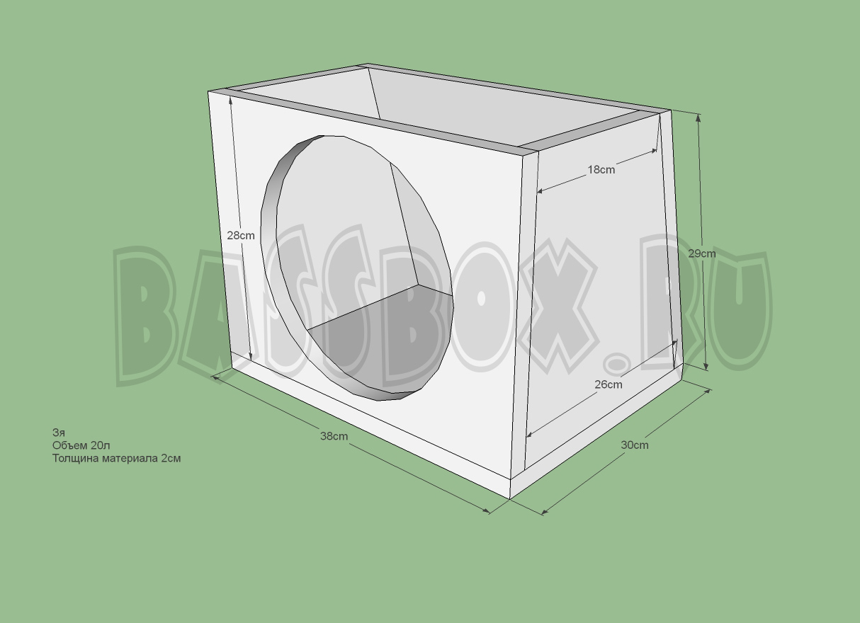 Закрытый ящик для URAL (Урал) AS-P10.5 может иметь объем всего 10 литров! При этом он себя будет чувствовать довольно комфортно. Это означает что его можно применить даже в случае совсем небольшого свободного места. Ниже будет предложен вариант закрытого ящика объемом 20 литров, задняя стенка скошена.