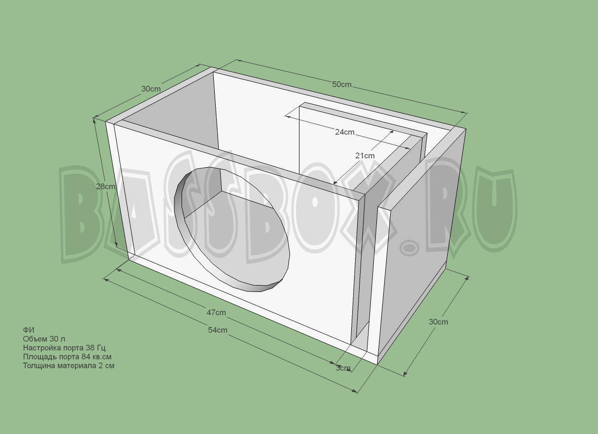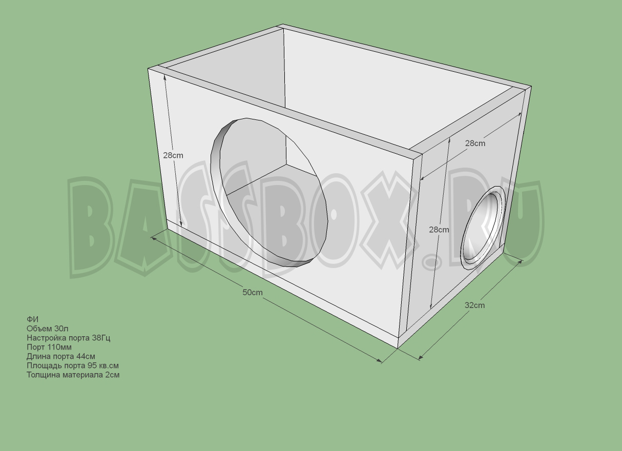 Чертеж ФИ короба 30л 38Гц c портом в бок для URAL (Урал) AS-P10.5