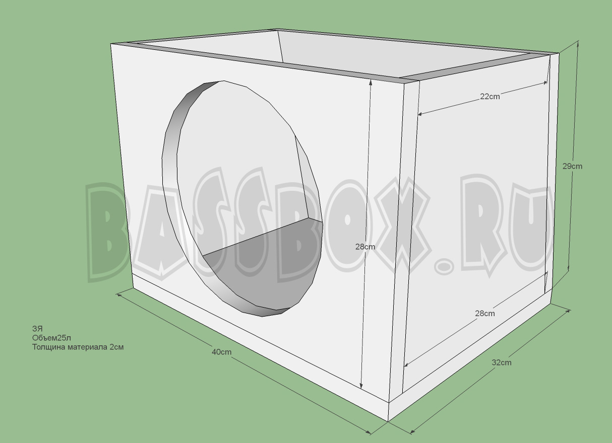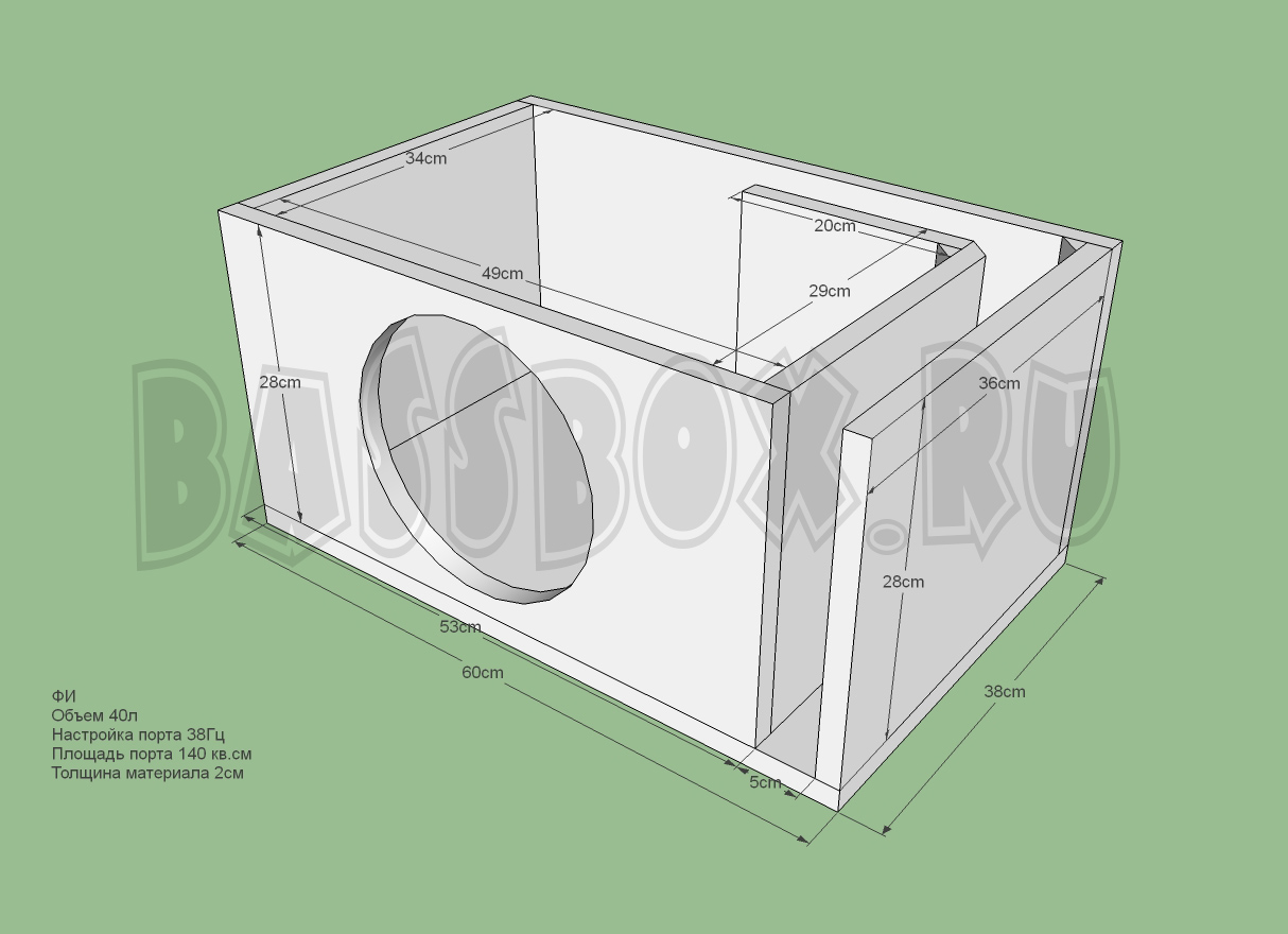 Чертеж ФИ короба 40л 38Гц c портом в бок для URAL (Урал) Bulava 10
