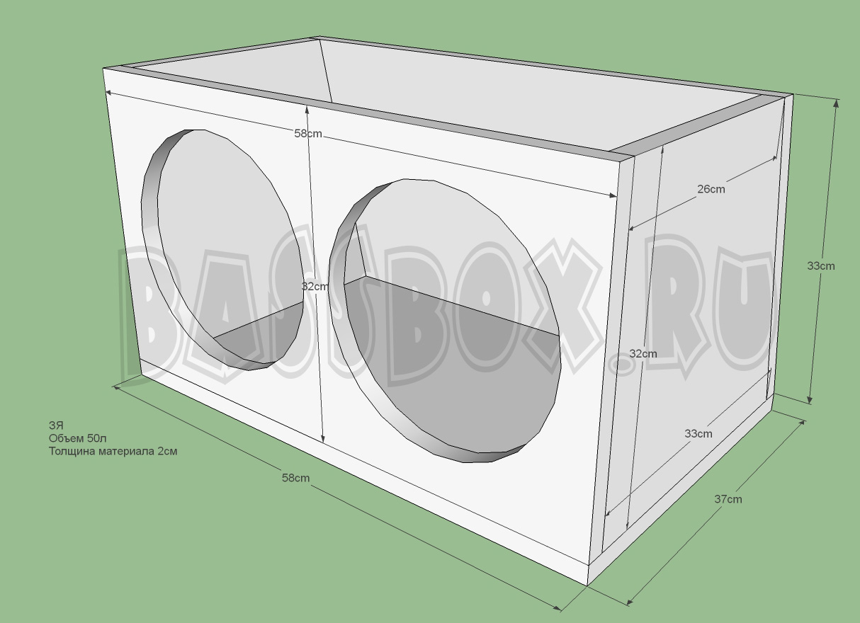 Чертеж ФИ короба 80л 38Гц для двух URAL (Урал) Bulava 10