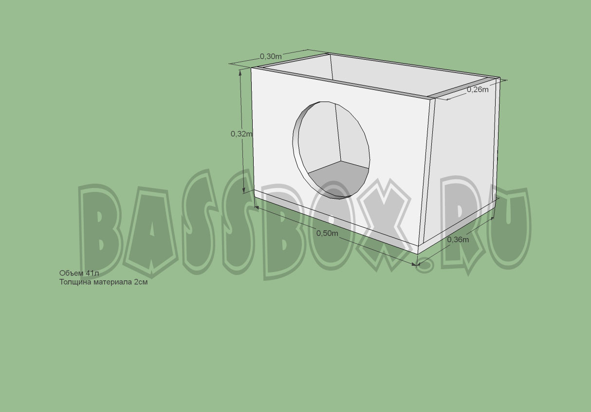 Закрытый ящик должен быть объемом 40 литров, это много для сабвуферов размера 10 дюймов, но для нашего образца еще и маловато. Но строить закрытый ящик больших размеров не имеет смысла.