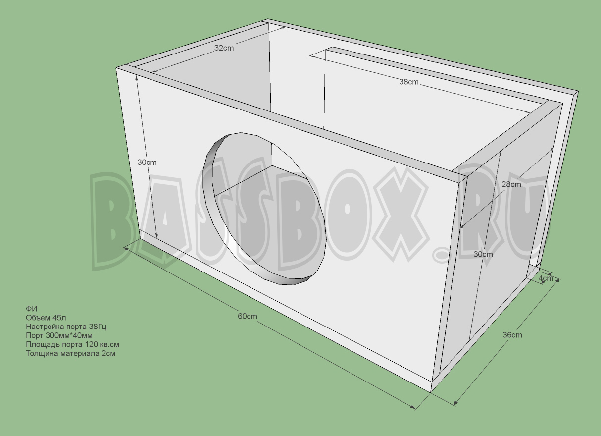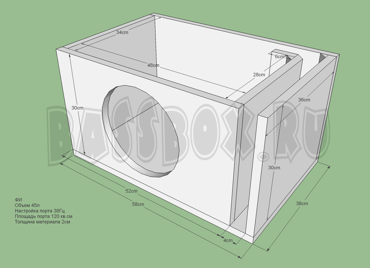 Чертеж ФИ короба 45л 38Гц c портом в бок ( с портом в крыло) для URAL (Урал) AS-C10.7