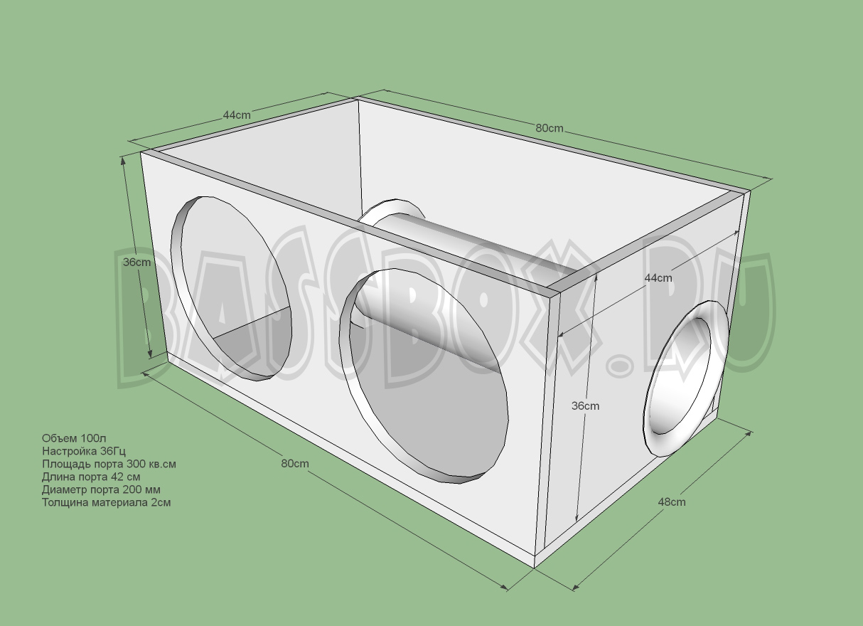 Фи короб для Двух URAL (Урал) TT 12 с легкостью может обходится чистым объемом 100 литров и настройкой порта в 36 Гц. Данные параметры Фи короба наиболее подходят для двух URAL (Урал) TT 12. В данном коробе сабвуферы порадует вас плотным низким басом.