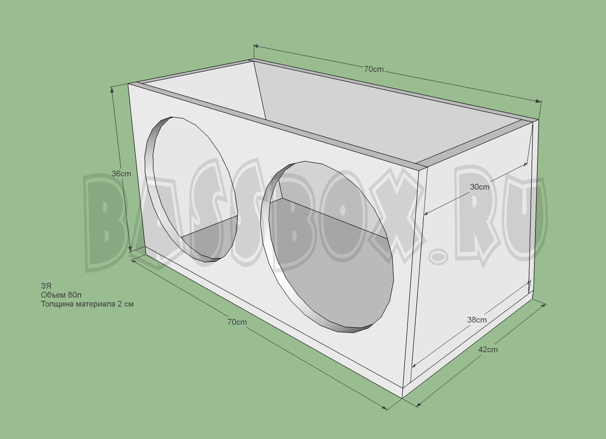 Закрытый ящик для двух URAL (Урал) Molot 12 должен обладать объемом 80 литров. Для двух URAL (Урал) Molot 12 это оптимальный объем короба. Объем довольно большой для двух 12, но это енобходимость. Molot 12 любит большие объемы.
