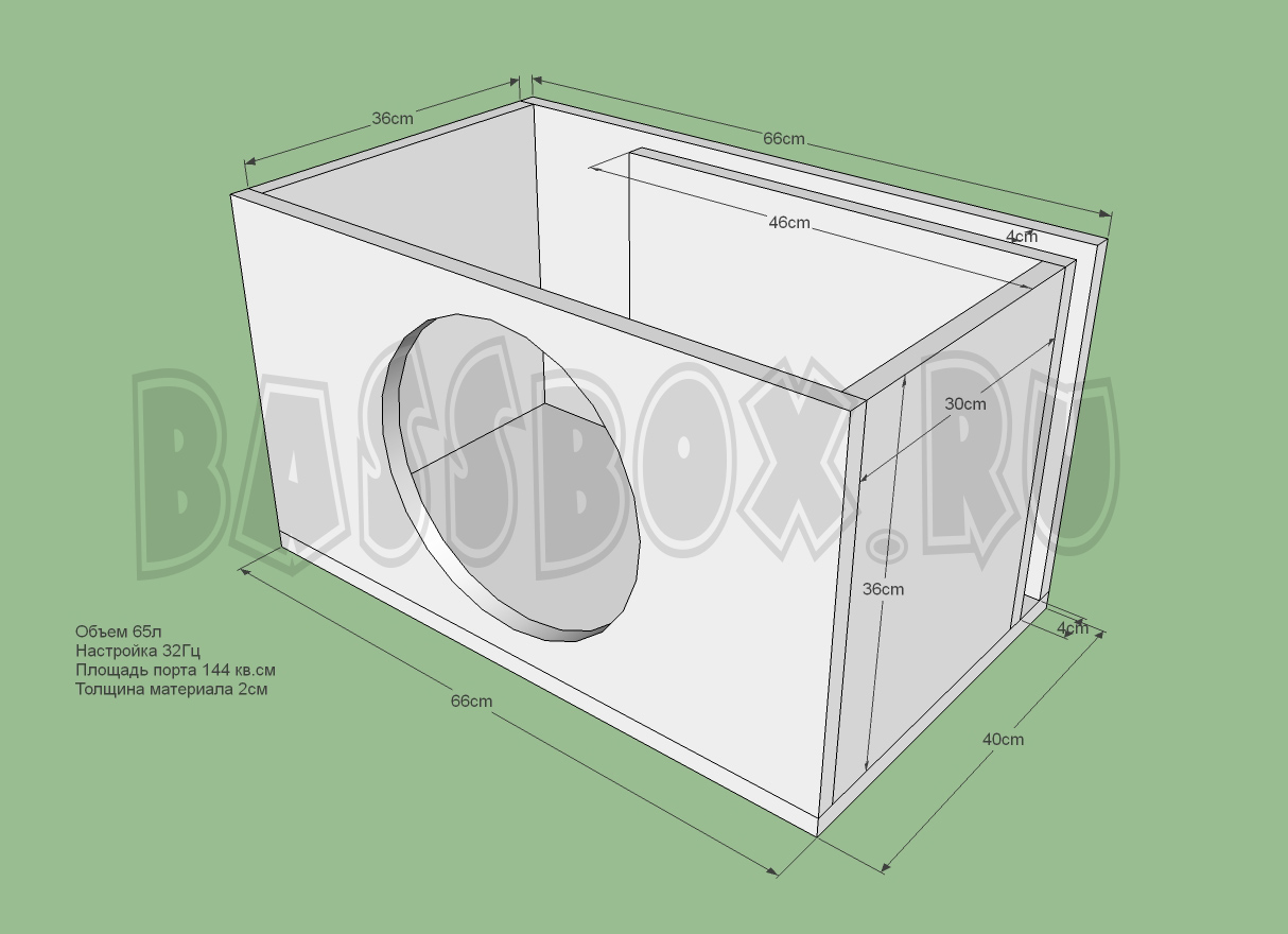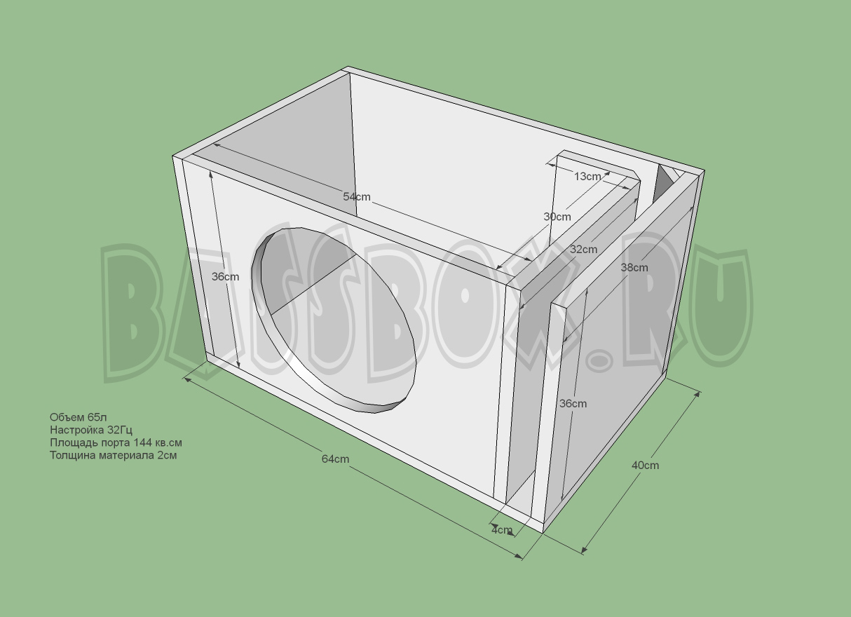 Чертеж ФИ короба 65л 32Гц c портом в бок ( с портом в крыло) для URAL (Урал) Molot 12
