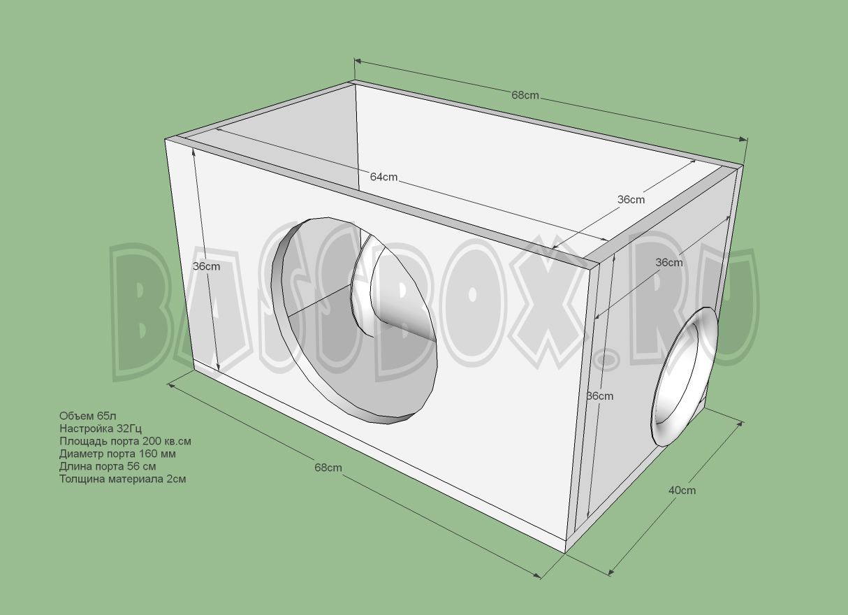 Чертеж ФИ короба 65л 32Гц на 160 трубе для URAL (Урал) Molot 12