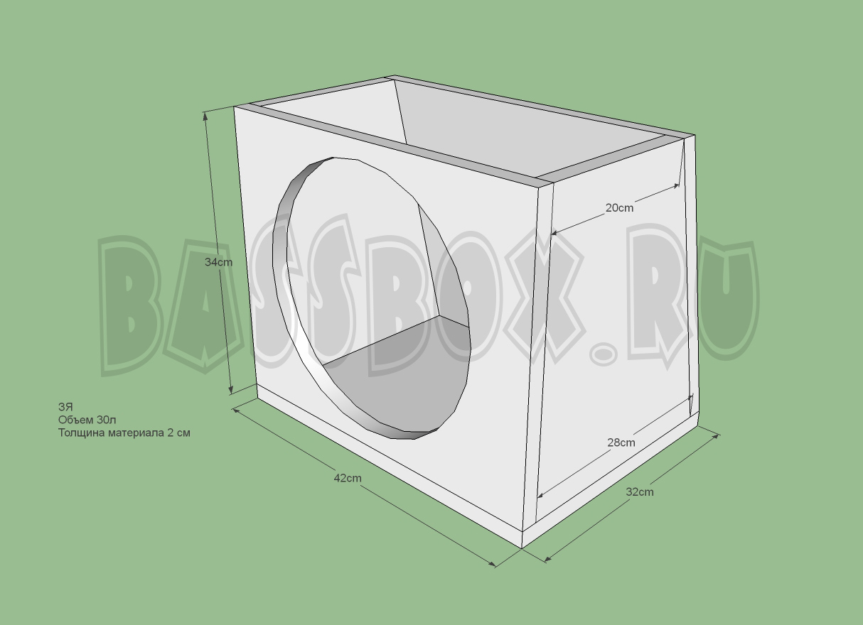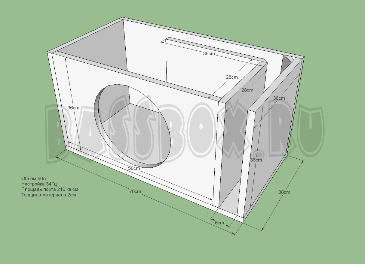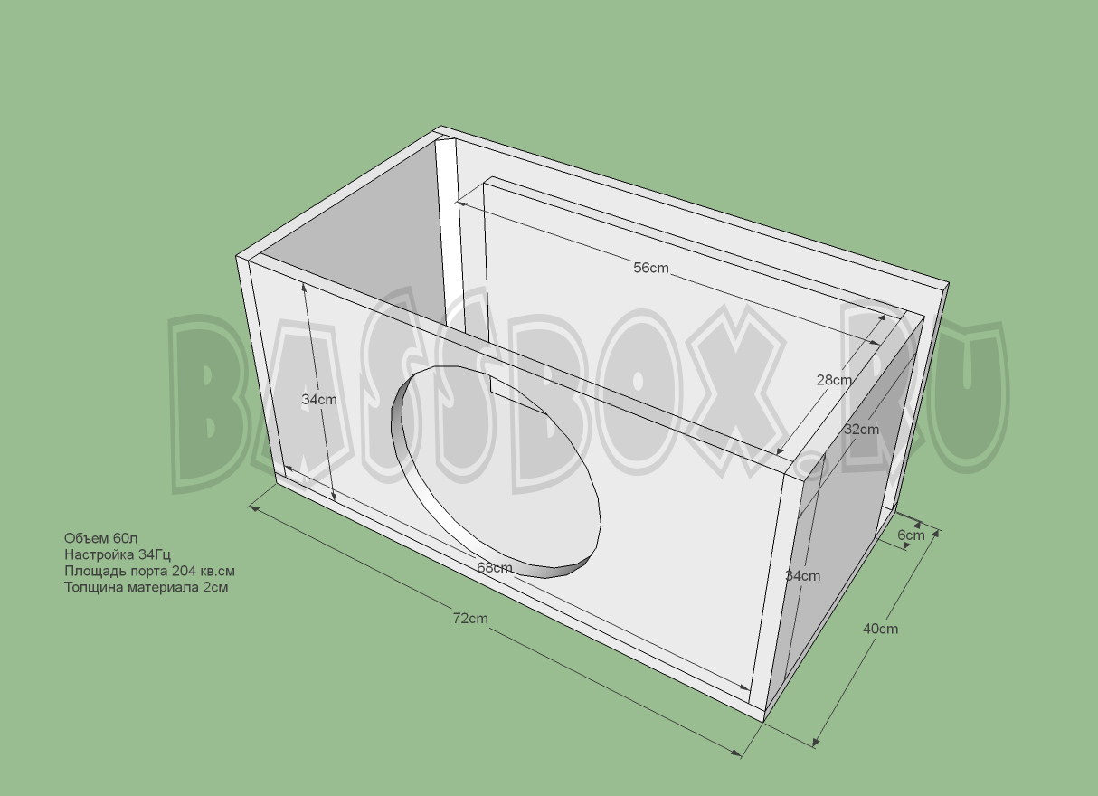 Чертеж ФИ короба 60л 34Гц c портом в бок для URAL (Урал) AS-D12.3D2 ARMADA