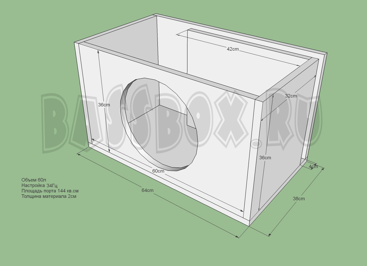 Для более большой отдачи в диапазоне низких частот можно выбрать объем в 60 литров. Ачх будет не такой музыкальной как в объеме 40л, но вполне приемлемой для фазоинвертора.