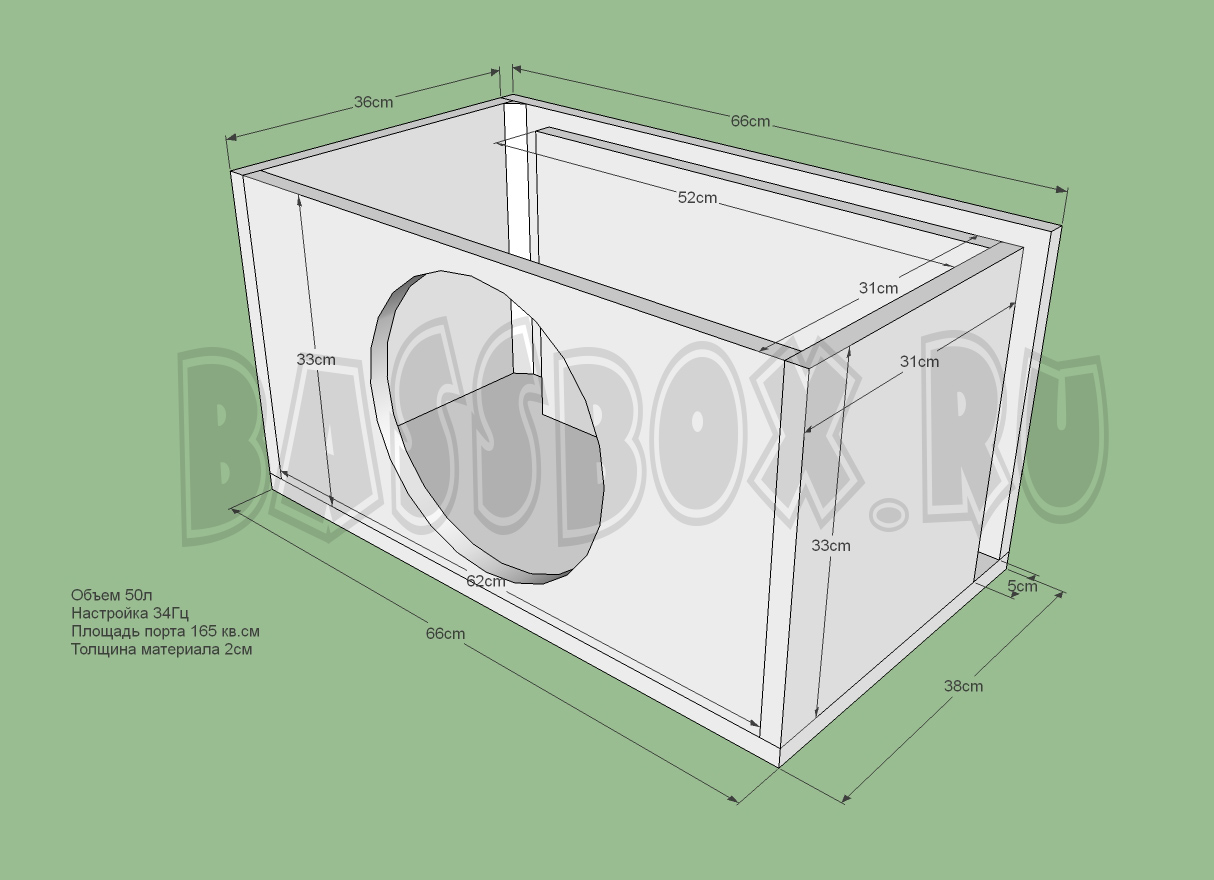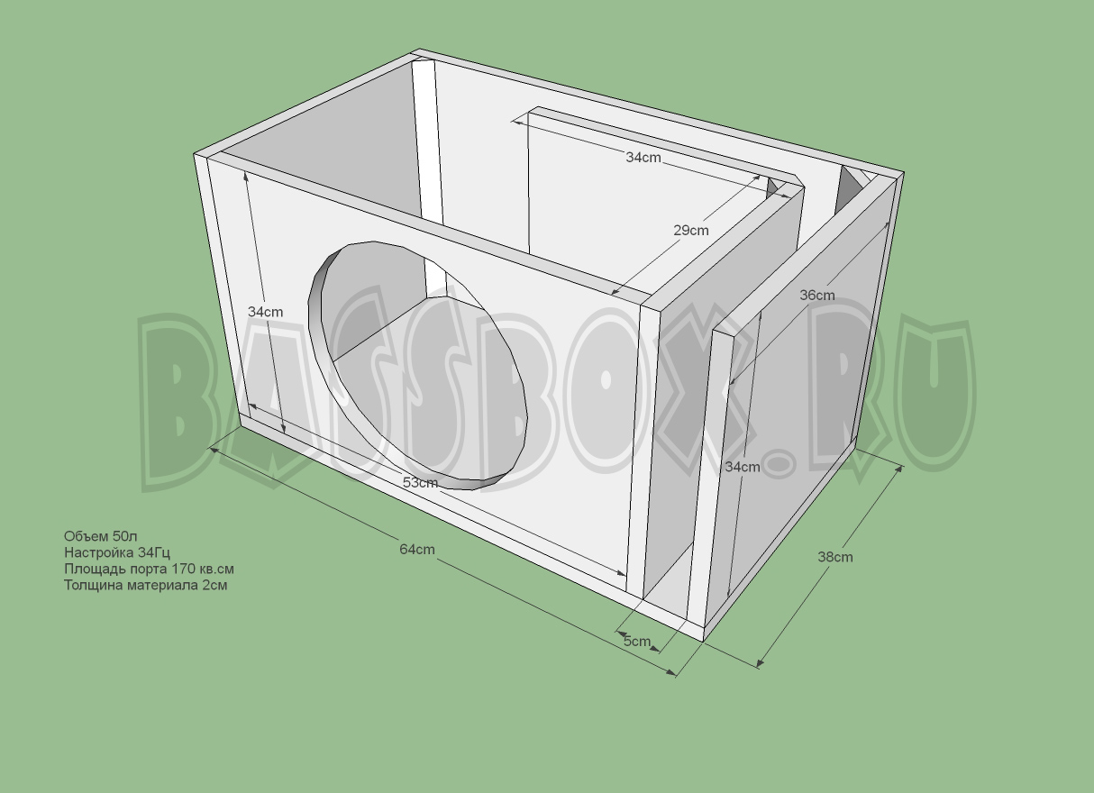 Чертеж ФИ короба 50л 34Гц c портом в бок для URAL (Урал) AS-W12SW GRAND2