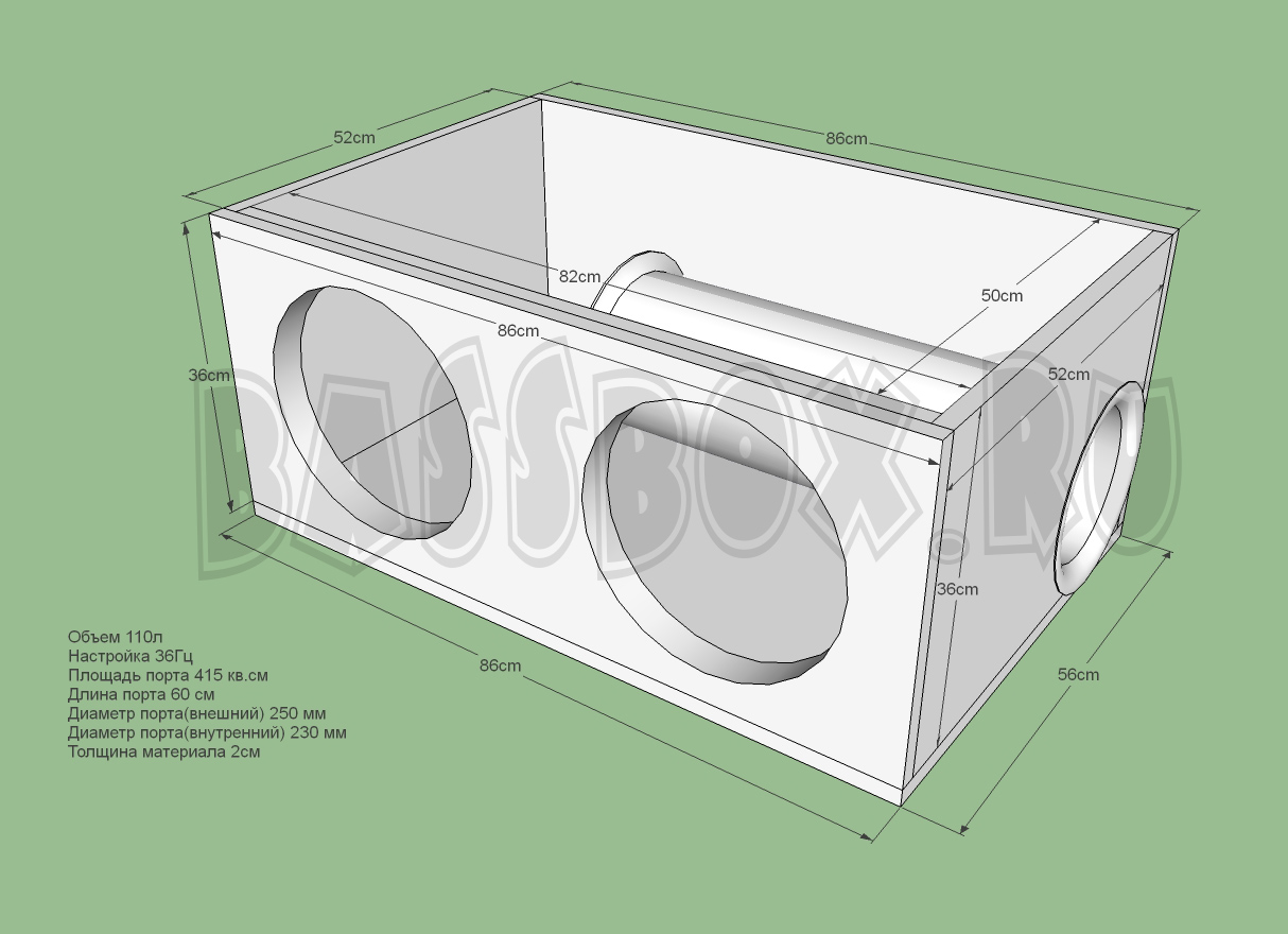 Чертеж ФИ короба 110л 36Гц на 250 трубе для двух URAL (Урал) Bulava 12
