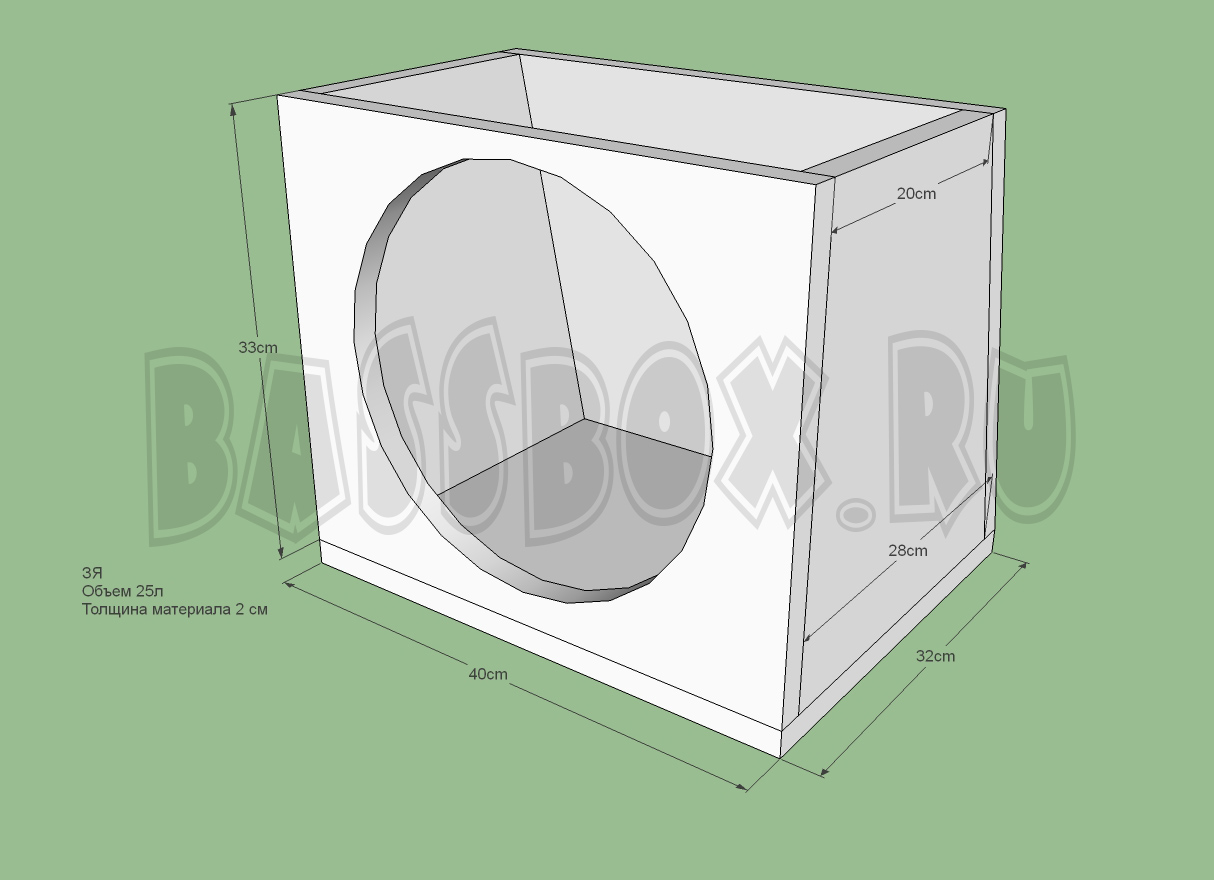 Чертеж ФИ короба 55л 36Гц на 160 трубе для URAL (Урал) Bulava 12