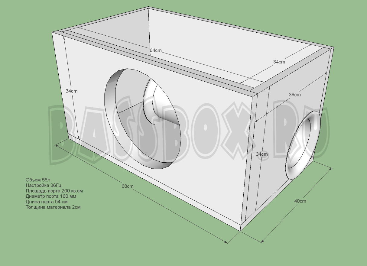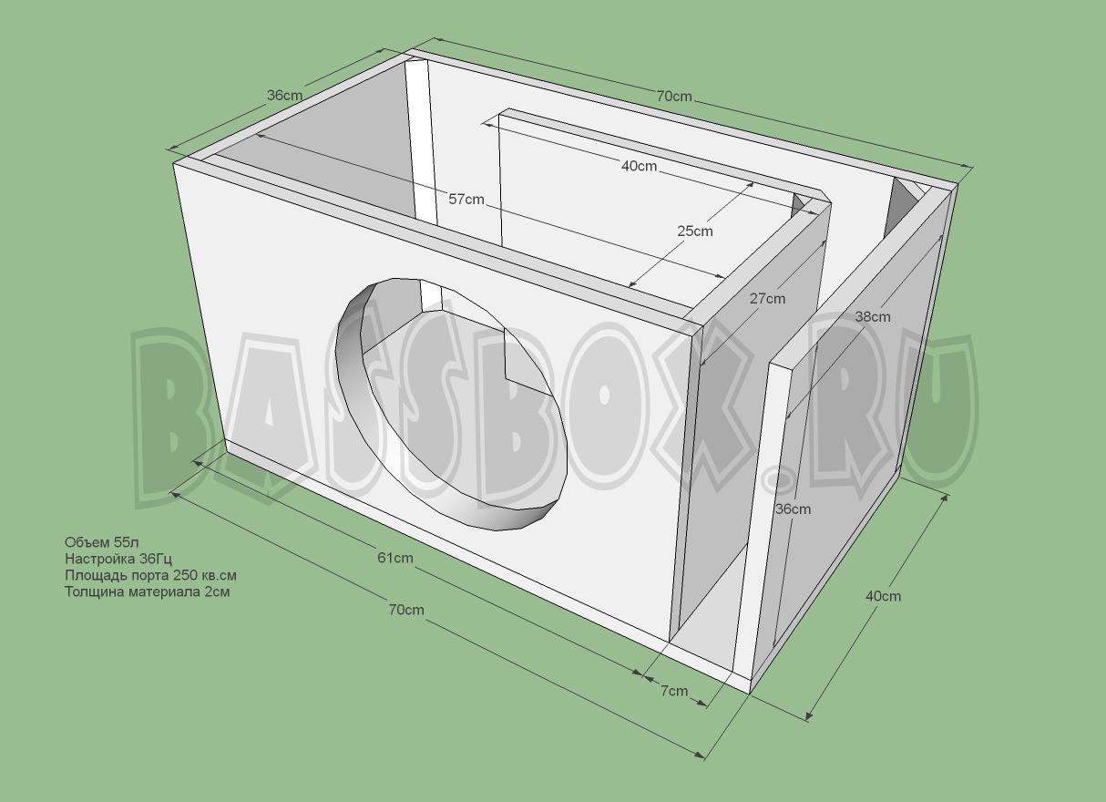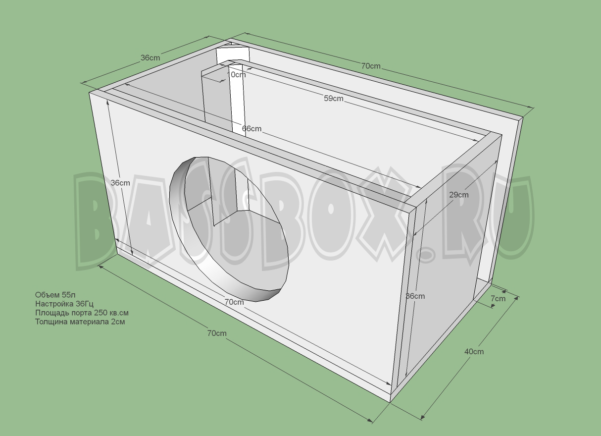 Чертеж ФИ короба 55л 36Гц c портом в бок для URAL (Урал) Bulava 12