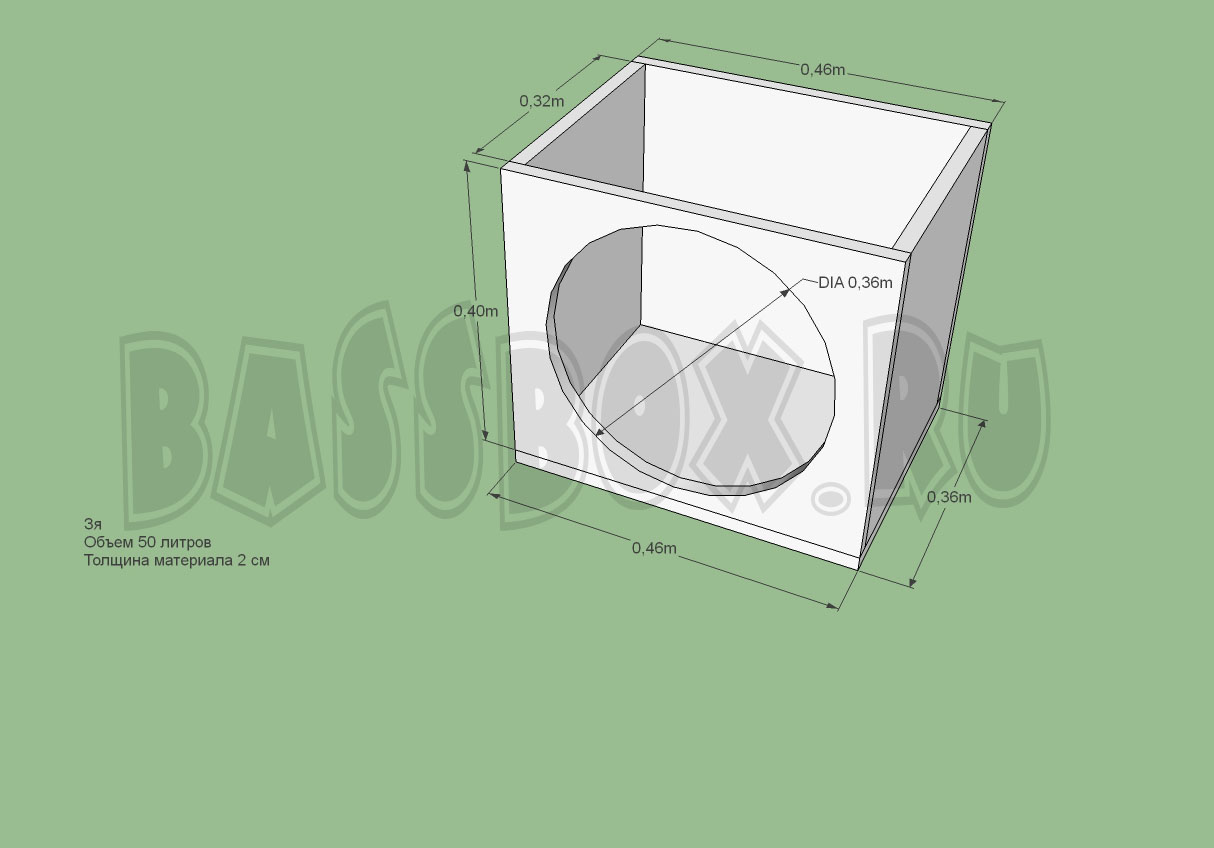 Короб "Закрытый ящик" для URAL (Урал) AS-D15.3D2 ARMADA тербует минимум 50 литров. Для закрытого ящика это большие размеры, но и сабвуфер у нас не маленький.